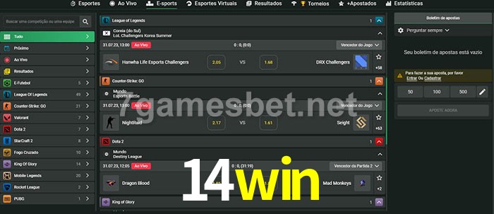 A aposta 14win oferece aos jogadores a experiência mais conveniente de apostas em eSports!